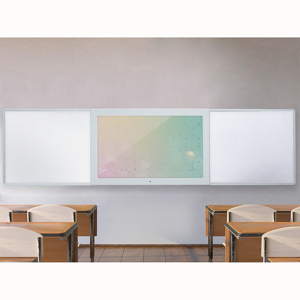 Современная школьная доска, объединяющая инновационные технологии и традиционные инструменты преподавания. В центре интерактивная сенсорная панель с multi-touch (до 10 одновременных касаний), по бокам - пишущая магнитно-маркерная поверхность. Подходит для оснащения школ, учреждений культуры, детских кружков, развивающих и коррекционных центров для детей.