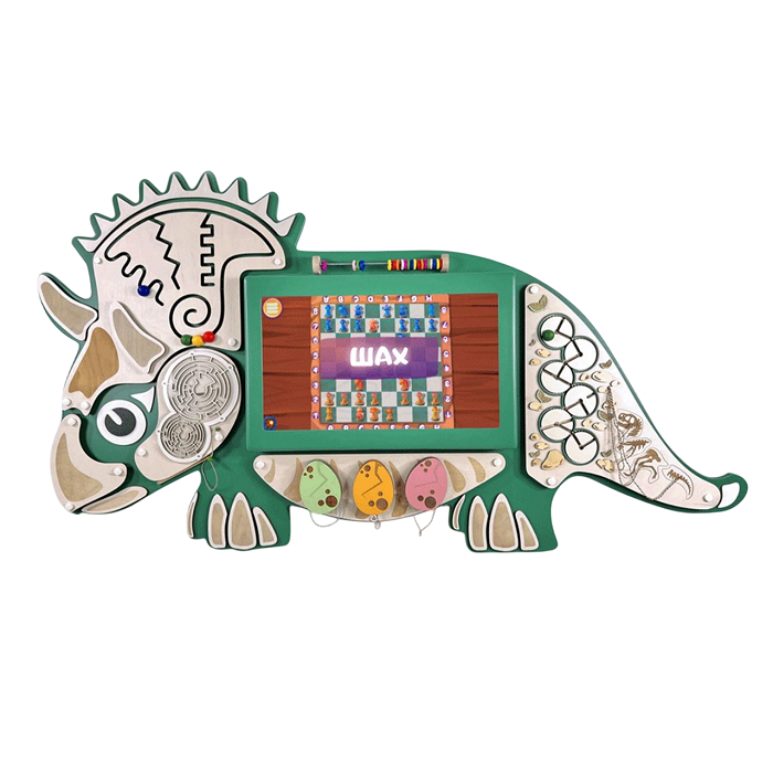 Интерактивный бизиборд Динозавр Визи для проведения общеразвивающих занятий с детьми дошкольного и младшего школьного возраста.