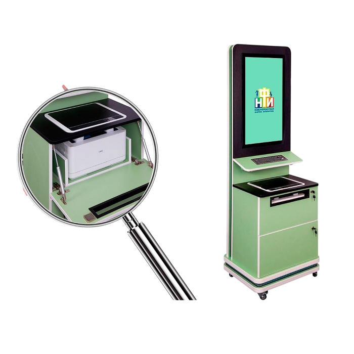 Интерактивный киоск поставляется с программным обеспечением расширенного функционала, с помощью которого вы сможете использовать его в самых разных сферах, где необходимо ускорить и улучшить обслуживание.