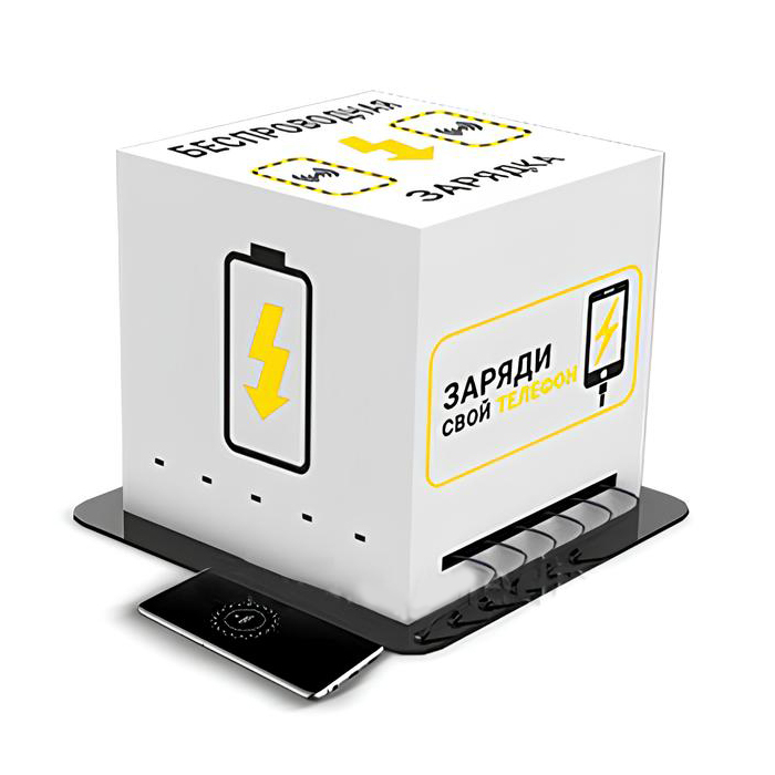 Стойка для зарядки представляет собой напольную станцию для быстрой зарядки электронных устройств током 3А (5В).
