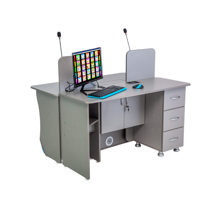 Интерактивный комплекс-стол «Logo Sensor NFI» сконструирован для работы 2-х учеников и педагога.  Сенсорный монитор учеников встроен в стол и имеет автоматический подъемный механизм. На ученическом модуле имеется столешница для коррекционных занятий. Можно писать, собирать конструктор, играть в настольные дидактические игры, а когда детям станет необходим сенсорный монитор для занятий, то педагог, легким нажатием на кнопку, поднимет монитор в рабочую область. При подъёме и закрытии монитора, для безопасности детей, автоматически включается голосовое оповещение.