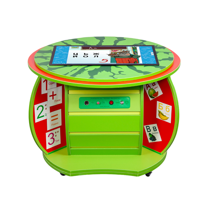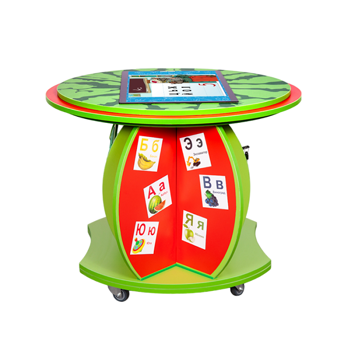 Разработанный профессионалами в детском развитии стол «Арбузик», станет неотъемлемым дополнением вашего образовательного процесса. Имея небольшой сенсорный экран с диагональю 23,6 дюйма, стол позволяет заниматься сразу с небольшой группой детей. Мультимедийный экран реагирует на 10 одновременных касаний и имеет антивандальное покрытие. Это позволяет установить стол не только в кабинетах учебных заведений, но и в торгово-развлекательных центрах. Наличие такого стола в кафе или ресторане, позволит родителям насладиться трапезой, а детям изучить новую информацию в игровой форме и улучшить свои навыки.