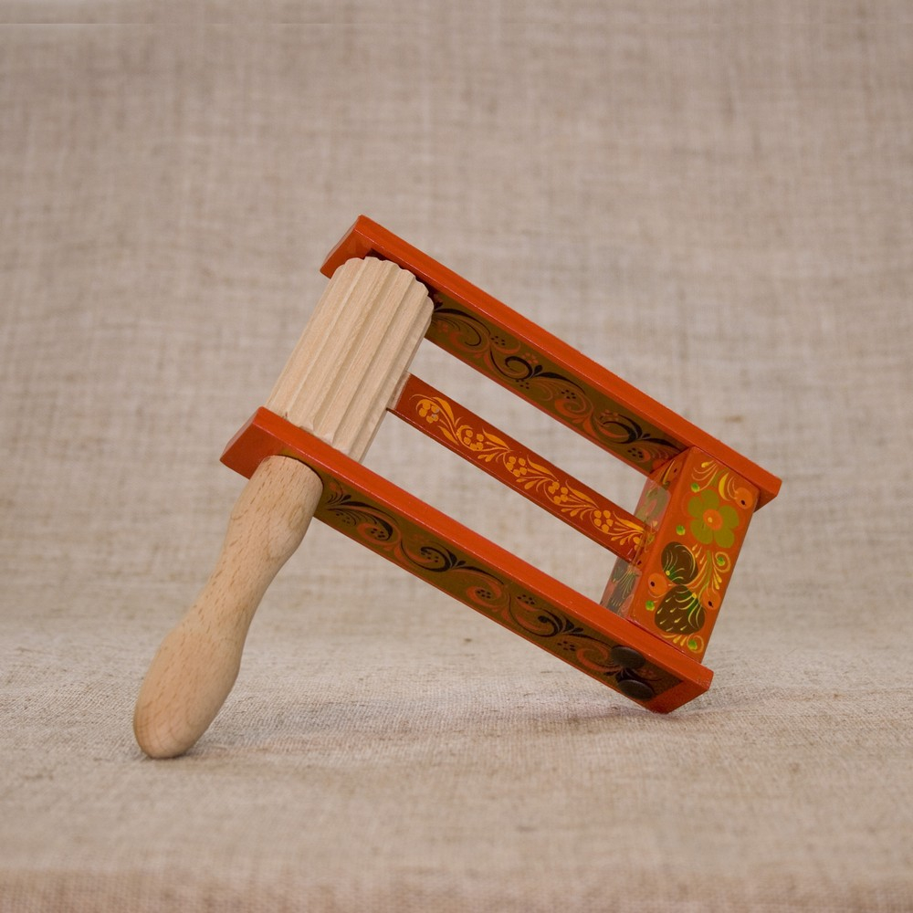 Трещотки расписаны Хохломской и Городецкой росписью на предприятиях нижегородских художественных промыслов.
