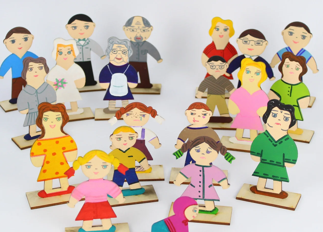 Набор выполнен из натурального дерева, что генетически откликается при работе с природным материалом. Имеет чёткий контур человека. Позволяет фантазировать и придумывать в песочнице разные образы и роли. В комплекте 20 фигурок на подставке. Окрашен в ручную художником. Разные эмоции людей позволяют выбрать ту, в которой найдёшь своё отражение.