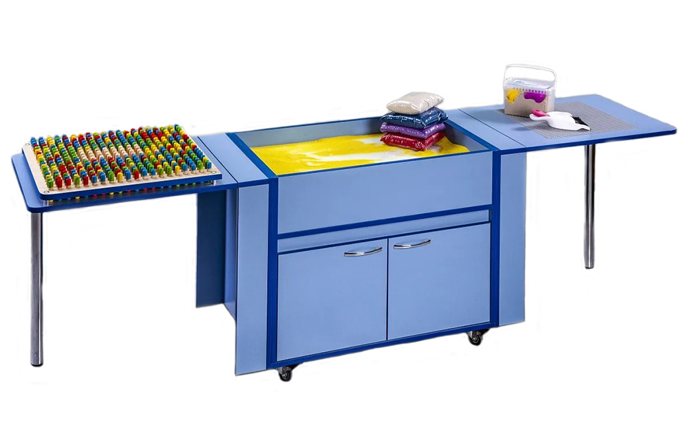 Световой песочный стол поможет ребенку погрузиться в волшебный мир песочной анимации и при этом более гармонично и интенсивно развивать все познавательные функции. В комплекте с модулем поставляются 2 вида песка: кварцевый  (натуральный и цветной) – для рисования и кинетический – для лепки.