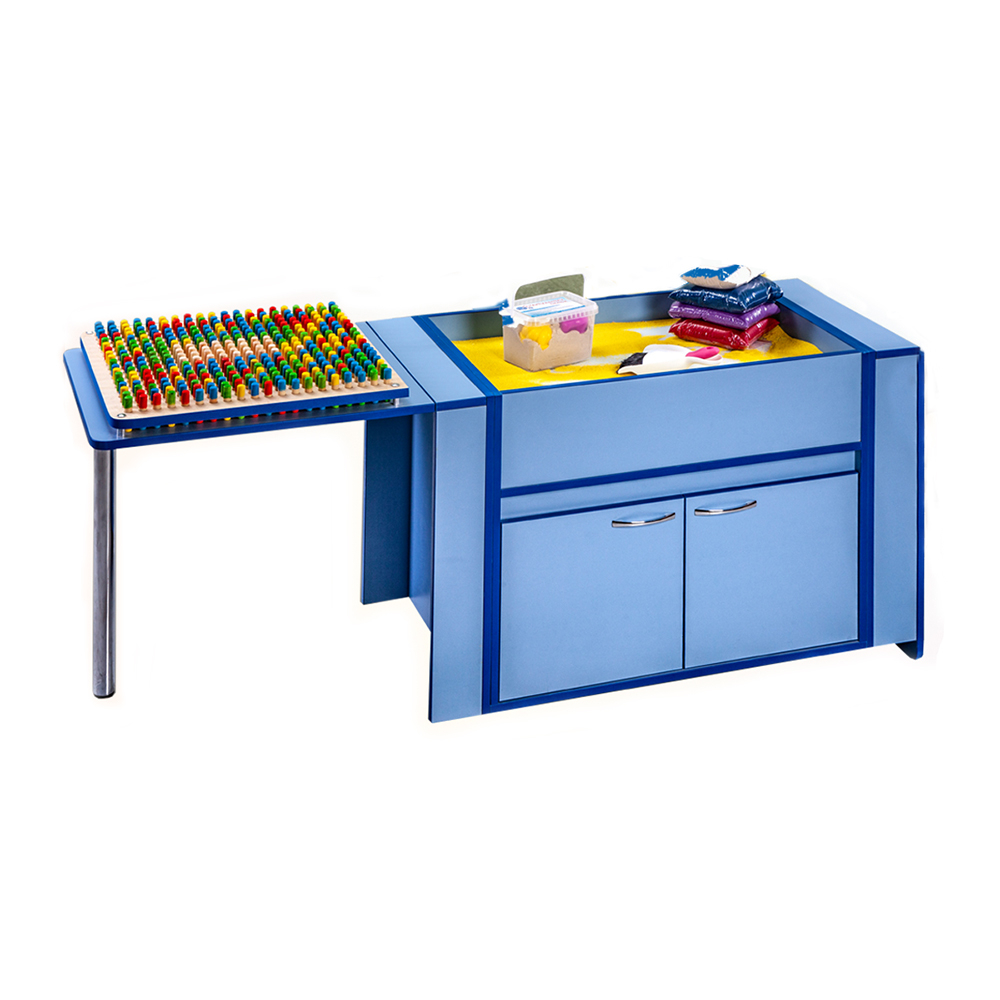 Встроенная по периметру  рабочей поверхности светового стола подсветка RGB поможет маленьким волшебникам воплотить свои фантазии в реальность, а пульт управления подсветкой облегчит им эту задачу. В модуле также присутствует возможность дополнительно расширить рабочее место откидными платформами, на одной из которых располагается деревянная мозаика, на втором откидном рабочем месте находится встроенная платформа для работы детей с конструктором Лего.