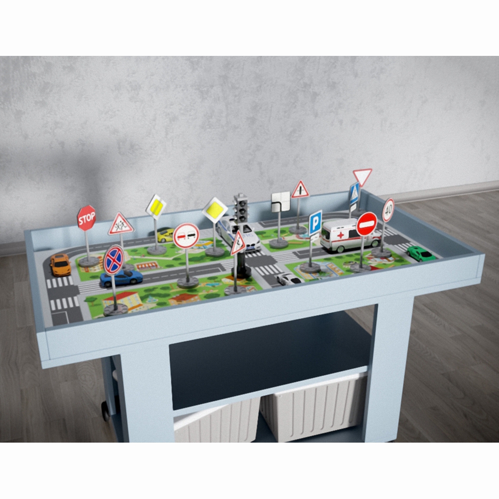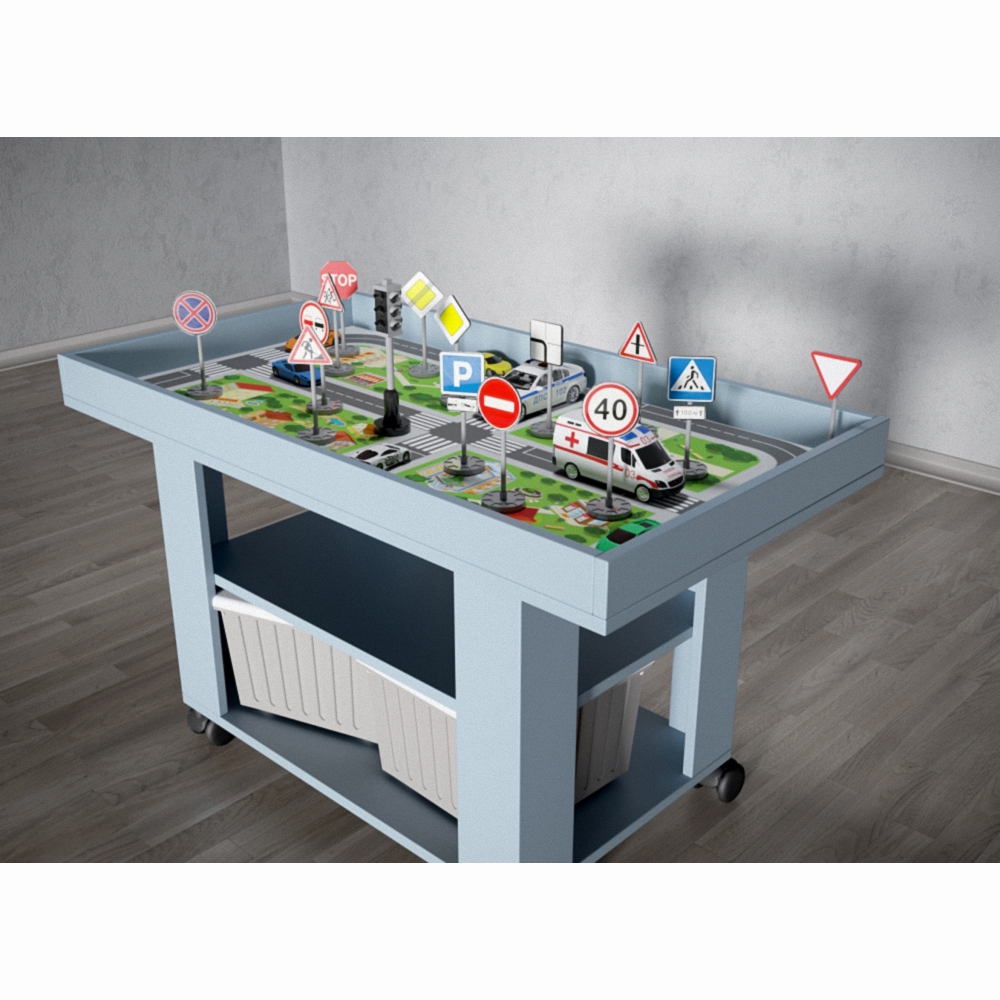 Игровой ландшафтный стол «Город» точно станет интересен не только детям, но и взрослым. На столешнице стола изображен самый настоящий город: с озером, торговым центром, дорогами, школой, парком и даже колесом обозрения. В комплекте идет конструктор, который поможет в занятиях и играх. Стол с таким отличным дополнением как конструктор помогут развить воображение ребенка. У этого стола высокие бортики, что позволит не переживать за потерю конструктора, а колесики на ножках помогут без труда его перемещать. Две полочки с ящиками создадут дополнительное место для хранения. С этим столом вашему ребенку точно будет интересно. Предназначен для детей от 3-х лет.