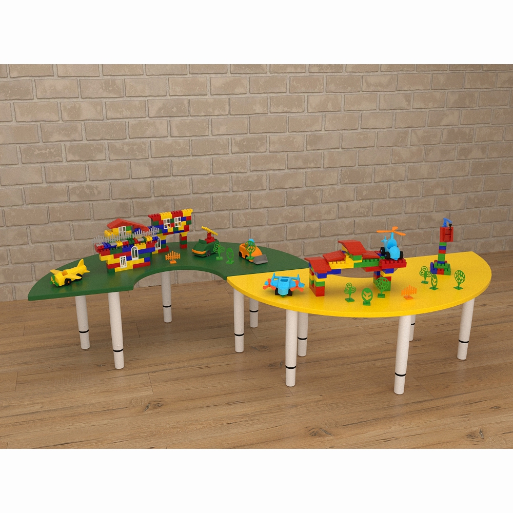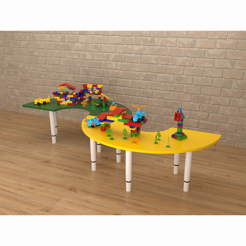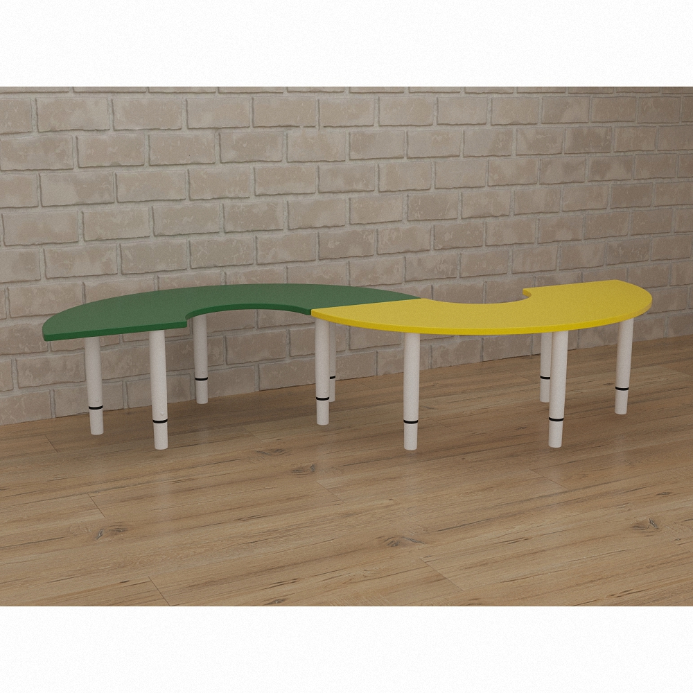 Красивый, приятный глазу дизайн и лаконичное исполнение – вот несомненные плюсы детского игрового стола “Зиг-Заг”. Именно из-за этих достоинств его можно считать необходимым элементом для оснащения развивающего пространства– ведь ребёнку гораздо приятнее заниматься и играть за необычным и красивым столом. Столешница представленного элемента мебели имеет форму “змейки” желто-зелёного цвета, а благодаря телескопической конструкции ножек можно отрегулировать стол под удобный для детей уровень.