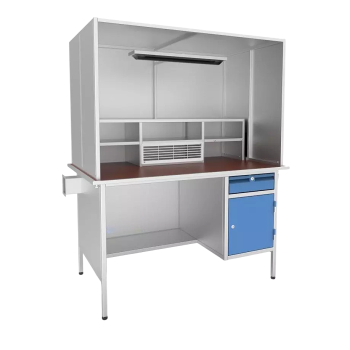 Стол предназначен для выполнения работ, связанных с пайкой, подготовкой к пайке, сборкой и ремонтом электроаппаратуры и оборудования.