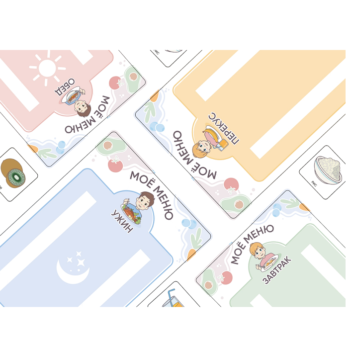 Пособие для ориентировки ребенка в питании в течении дня. Помогает снять напряжение, поддерживает мотивацию ребенка. Вариант для мальчика и для девочки.