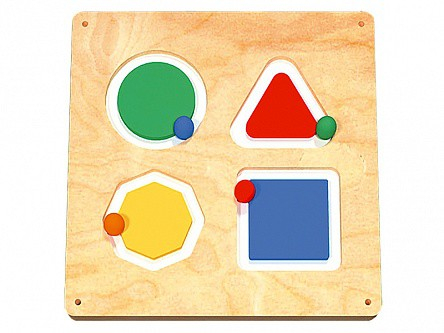 Представляет собой панно, изготовленное из влагостойкой фанеры. На панно расположены 4 вида геометрических фигур: треугольник, квадрат, круг и восьмигранник. На каждой из фигур расположен шарик, который может передвигаться по траектории, заданной объектом.