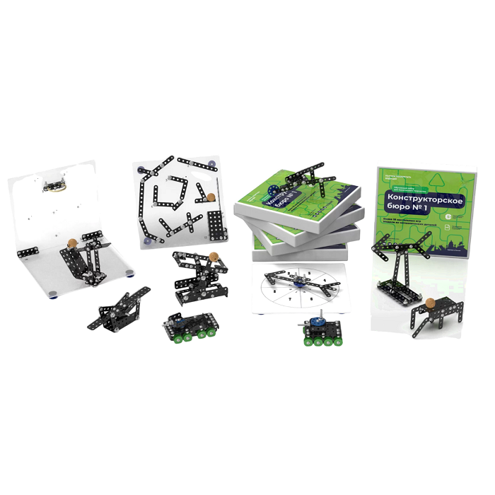 Первый набор серии «Конструкторское бюро» — это не только увлекательная, но и познавательная игра для детей и их родителей. Из металлических деталей, пластика и картона можно самому изготовить настольные игры или собрать механические модели.