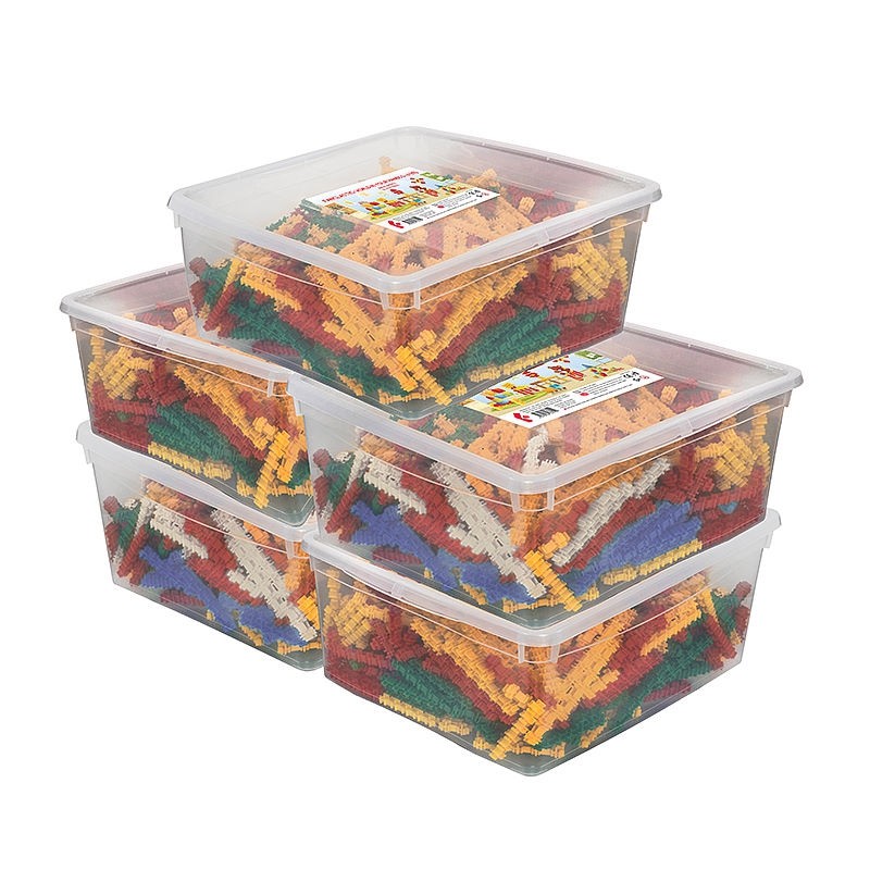 Объемный набор размещен в 5 пластиковых контейнерах. Их удобно убирать после занятий, все детали распределены по разным емкостям. В комплекте строительнык элементы, соединительные детали. Он используется в рамах парциальной программы интеллектуально-творческого развития дошкольников, рассчитан на 36 занятий при одновременной работе 15 человек. Создание трехмерных моделей развивает пространственное мышление, мелкую моторику, способность разбираться в схемах. Рекомендуется для детей средней группы детского сада.