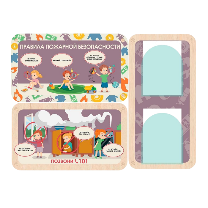 — Обучение правильному поведению с огнём. Стенды по правилам пожарной безопасности помогают детям развивать знания, необходимые для предотвращения возникновения пожароопасных ситуаций и эвакуации в случае опасности. Стенды являются постоянным и видимым напоминанием детям о правилах пожарной безопасности. А повторение правил и воспроизведение их в памяти помогает малышам поддерживать актуальность знаний.