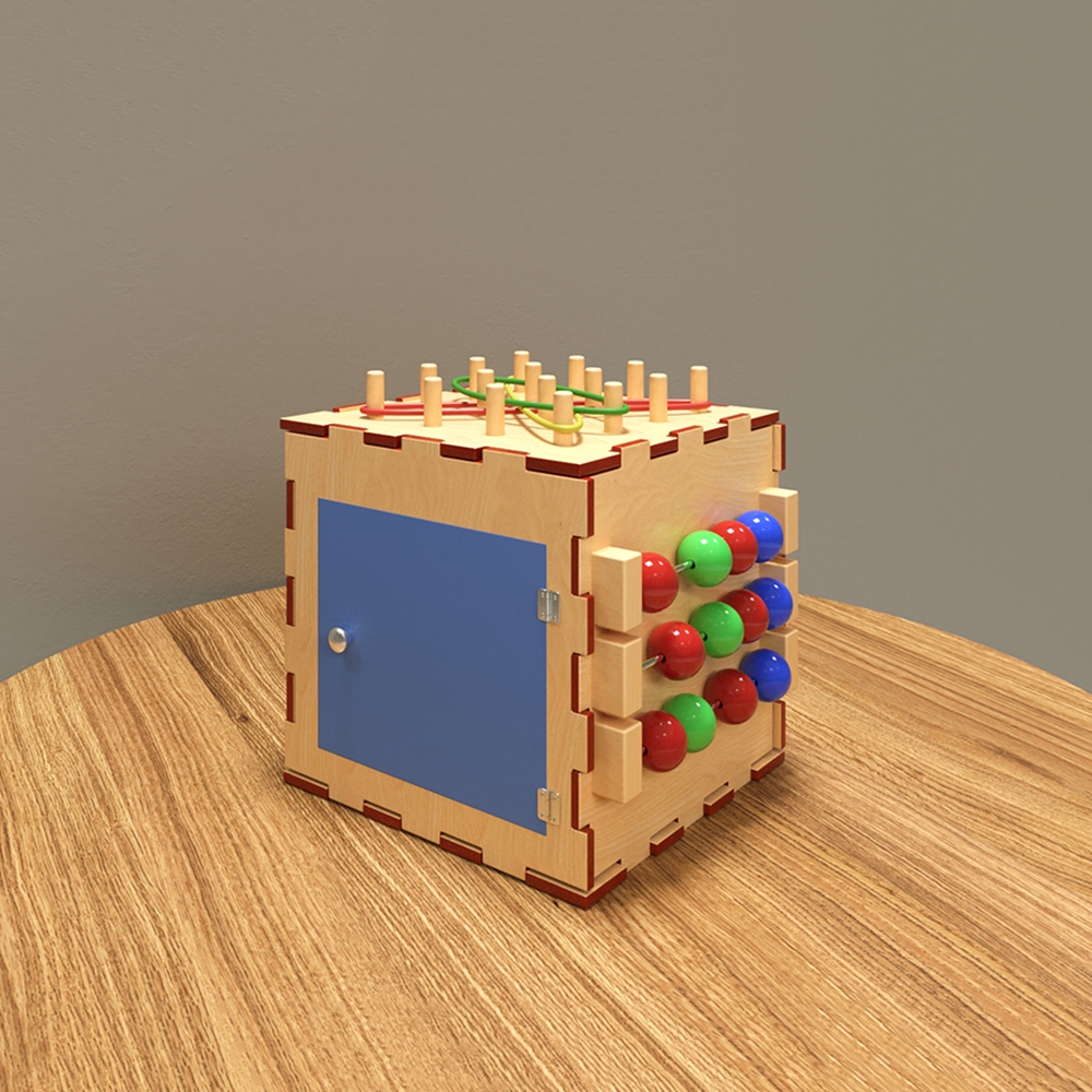 Бизикуб – объёмный аналог бизиборда, игровой модуль с дидактическим уклоном для детей от 1 года. Несмотря на объёмную форму, бизикуб компактен, не занимает много места и замечательно экономит игровое пространство, не уменьшая при этом его ценности. Имеет множество деталей, которые прочно прикреплены к поверхности, что позволяет играть с бизикубом даже самым маленьким малышам.