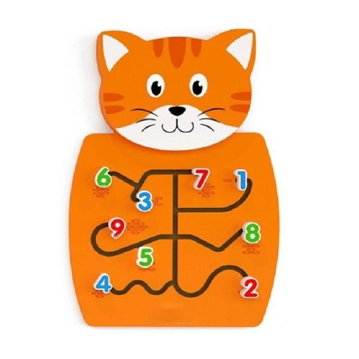 Настенная панель "Кот-цифры" предназначена для изучения математики. Ребенку необходимо соотнести передвигающиеся в лабиринте цифры с соответствующим числу рисунком на настенном развивающем модуле.