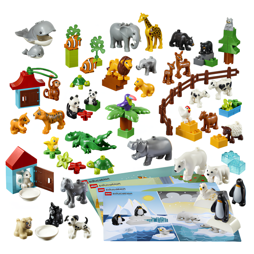 Набор «Животные» входит в Систему дошкольного образования LEGO Education и включает в себя 91 деталь LEGO DUPLO, в т.ч. 40 фигурок диких животных, сельскохозяйственных животных и домашних питомцев.