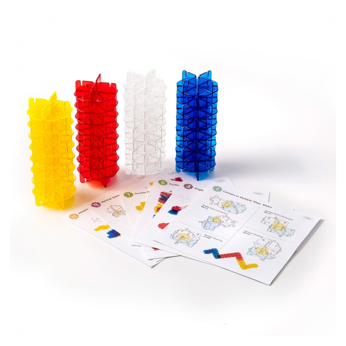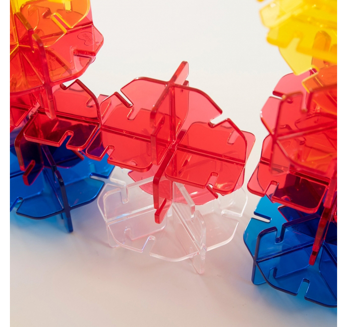 Набор блоков Weplay «Цветные кристаллы» - это творческий набор блоков открытого типа. Блоки могут соединяться под разными углами или даже с двумя точками соединения. Дети учатся соединять и балансировать блоки, создавая свои художественные работы. Три вида прозрачных блоков основных цветов позволяют детям понять начальные динамические понятия смешивания цветов. Шесть двусторонних игровых карточек предлагают вдохновляющие идеи.