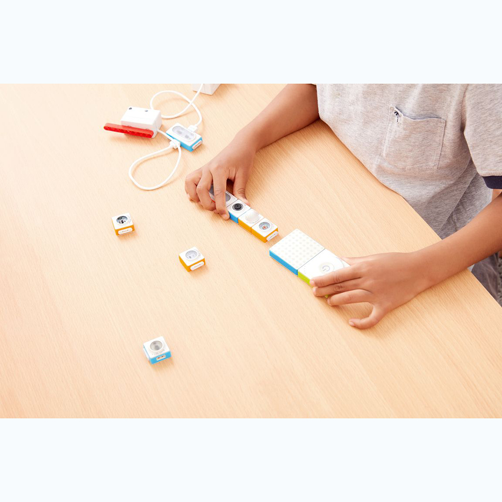 Он включает в себя основные программируемые электронные элементы робота (модули питания и связи, датчики, исполнительные модули, силовые модули и т.д.). Собираемые из модулей проекты знакомят детей с устройством робота, позволяя понять принцип работы БЕЗ ПРОГРАММИРОВАНИЯ. Легкое соединение модулей, возможность использования модулей без программирования, програмирование в приложении Neuron и совместное программирование с роботом Codey Rocky на ПК в mBlock5. Набор рекомендован, как переходная ступень от безэкранного программирования mTiny к программированию роботов в графической среде mBlock5.