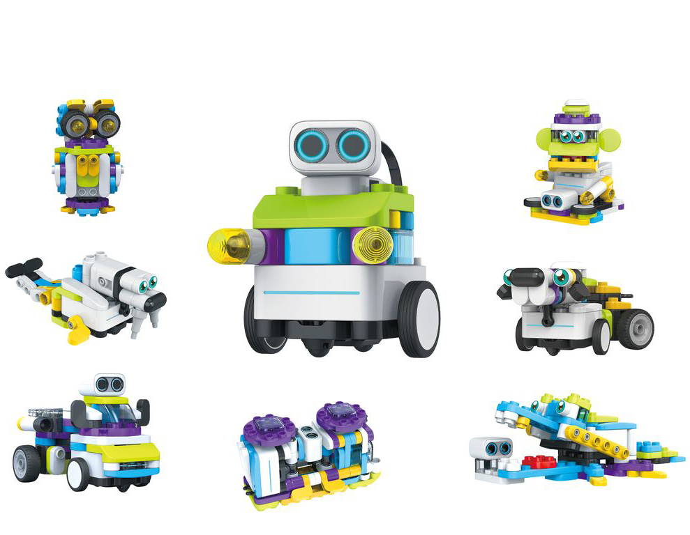 Набор позволяет собрать одного из восьми уникальных веселых роботов. В составе набора содержится программируемый блок управления с двигателями и модулями связи, датчик расстояния, сервоприводный блок и конструктивные элементы для постройки робота. Программирование осуществляется в визуальной среде на мобильном устройстве с использованием игровой дополненной реальности. Подключение по Bluetooth. Робот может двигаться, светиться, танцевать, и издавать звуки.