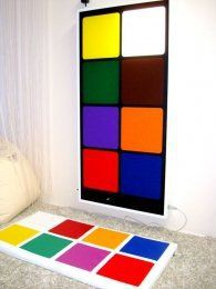 Комплект из 2-х панелей. Настенная панель размером 1500Х700х120 мм, материал: пластик, акрил.  Напольная панель размером 1200Х600х130 мм, материал: поролон, винилискожа. Три режима работы, позволяющие ребенку своими движениями в танце создавать музыку.