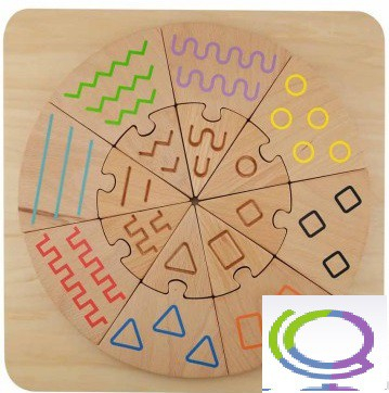 На панели представлен круг, состоящий из сегментов, каждый из которых имеет свою текстуру и свой рисунок. Каждый сегмент поделен на 2 части, имеющие общую текстуру и общий рисунок. С помощью данного пособия можно придумать множество игр на тактильное и визуальное соответствие.