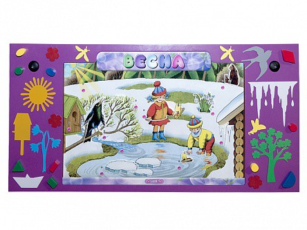 В комплекте со стендом поставляются карточки с изображениями весенней атрибутики, что позволяет проводить обучение в игровой форме. Дети выбирают изображение, которое, по их мнению, соответствует элементу на карточке, показанной воспитателем.