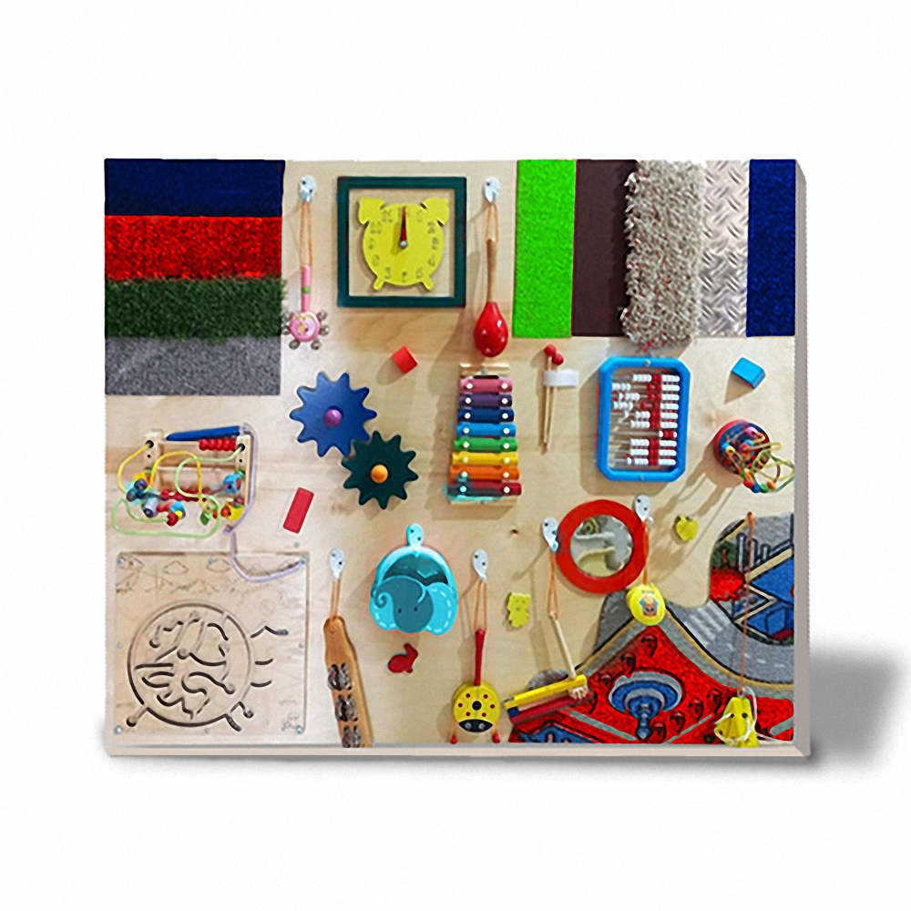 Тактильная музыкальная панель “Звонкая мелодия” - это не просто разные поверхности, а еще и целый мир различных инструментов. Колокольчики, маракасы, ксилофон. Множество поверхностей и предметов разной структуры: сенсорные коврики, шестерни, подвижные шарики, двигающиеся по траектории, часы с большими цифрами, зеркало и счеты. Все предметы помогут познакомить ребенка с разными плоскостями на ощупь, научиться различать текстуры и цвета. Это формирует первые навыки и опыт. Также панель сочетает в себе первые музыкальные инструменты, которые принесут новые эмоции и смогут расширить фантазию малыша. Тактильное восприятие от прикосновения к разным поверхностям делают игру интересной, приятной и успокаивающей. Тактильное восприятие - это первый инструмент, через который дети познают мир вокруг себя. На наших руках находится множество рецепторов, которые передают информацию в головной мозг. Формирование моторики улучшает речь у детей, и способствует скорейшему ее развитию.Тактильная музыкальная панель Звонкая мелодия заинтересует как маленьких детей, так и постарше, а родителям поможет сохранить дом в целости и сохранности.